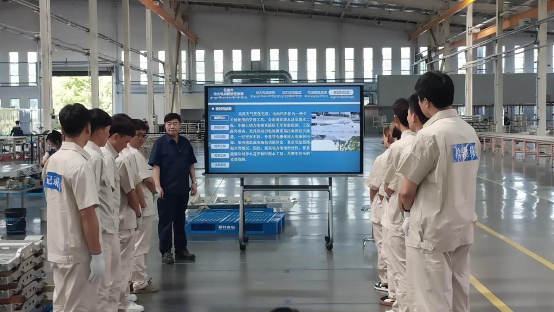 课堂上,淮北相淮杰出工匠、团队成员谢鹏老师首先为学生们讲解了在生活中新能源汽车遇到涉水等问题如何处理,并对学生们提出的疑问进行及时解答。随后,公司技术人员指导学生们进行动力电池气密性检测。